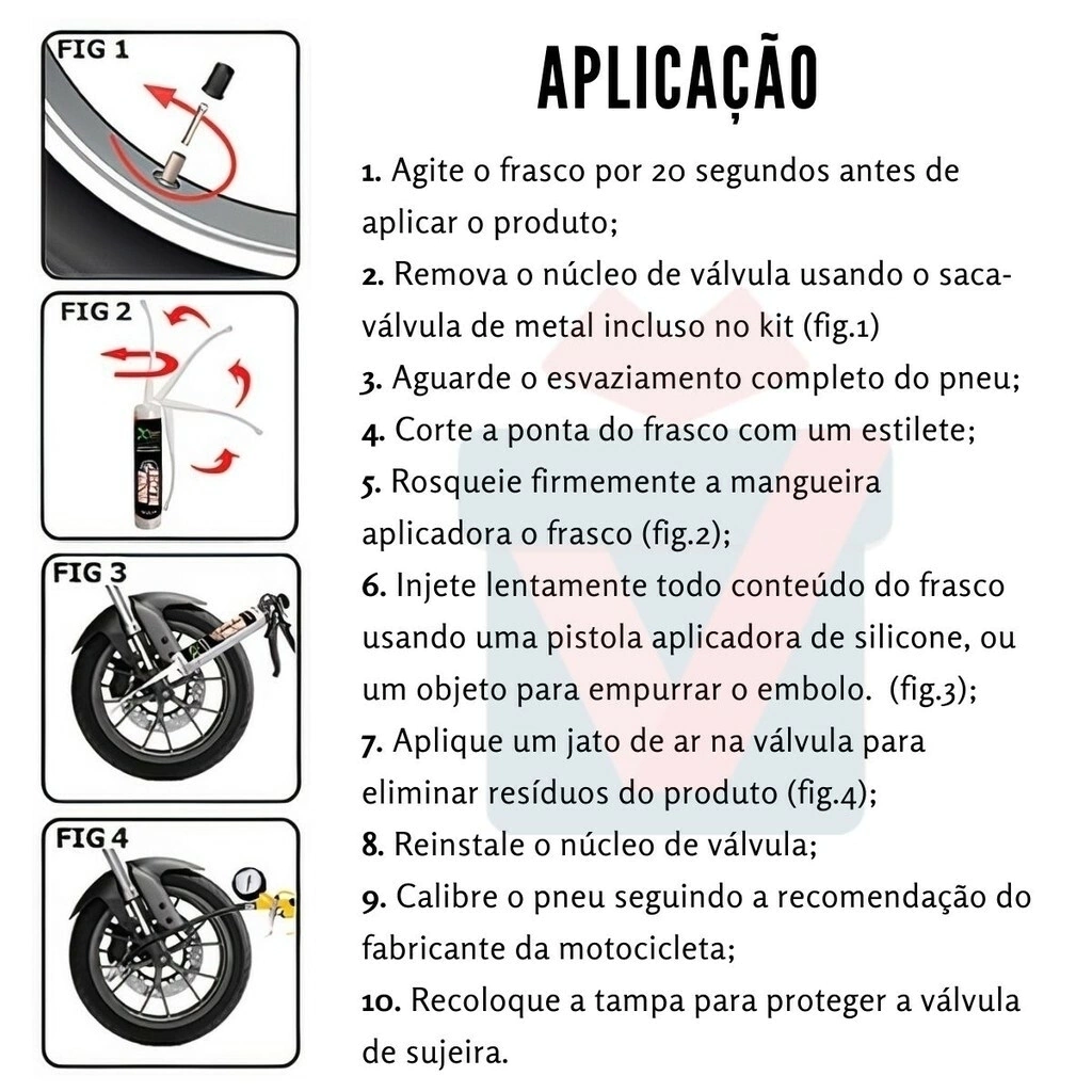 Observação: Após fazer uso do produto, vá até um profissional e efetue o reparo definitivo do pneu.